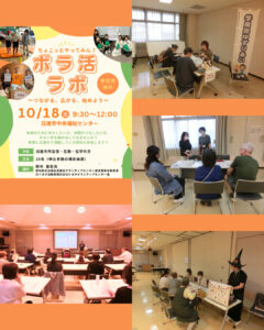 10/18(土)に「ちょこっとやってみん?ボラ活ラボ~つながる、広がる、始めよう~」を開催しました。地域のために何かしたい、仲間作りをしたいという想いがある方向けの講座です。