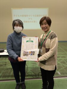 子どもの居場所づくり応援団から感謝状のお渡し♪